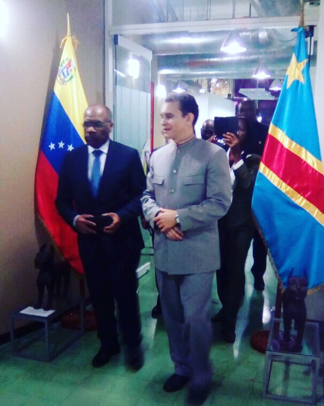 En agradable conversación con Reinaldo Bolívar versaron sobre el origen del Centro de Saberes y su función pionera en América Latina y el Caribe en la investigación estratégica y difusión de la africanidad y amistad entre los Pueblos del Sur. Okitundo mostró su alegría por la misión de hermanamiento del Centro de Saberes, por la sorprendente colección de obras de arte de la africanidad, por sus documentos y por la labor que cumple. La RDC fue una de las primeras repúblicas con las que Venezuela estableció relaciones diplomáticas en 2005 gracias a la implementaciòn de la Agenda África. En esa oportunidad, Reinaldo Bolìvar, viceministro para entonces, firmó en nombre de Venezuela.