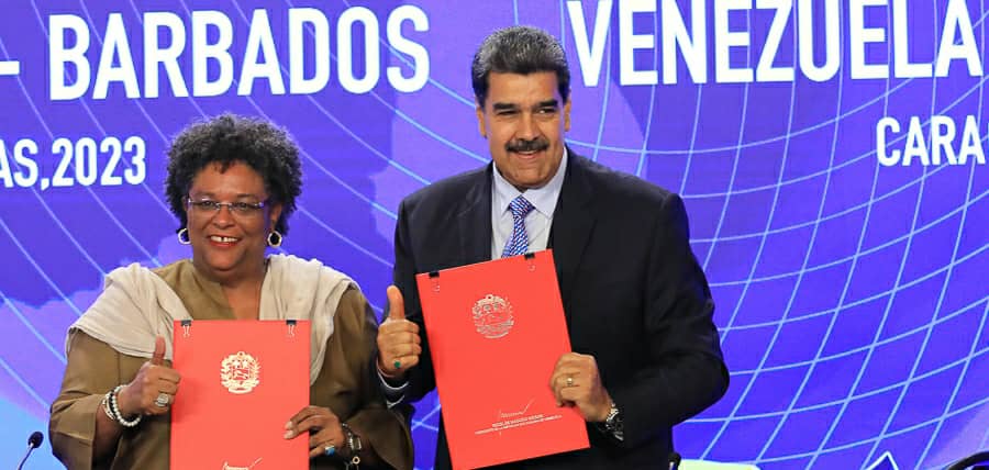 Primera Ministra de Barbados Mia Mottley y el Presidente Nicolás Maduro