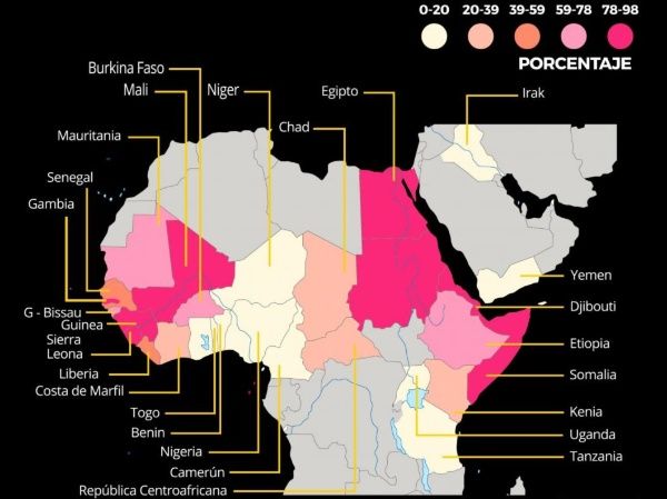 El Fondo de Población de las Naciones Unidas (UNFPA) refleja que la ablación genital se concentra en 30 países de África y Medio Oriente, aunque afirma que es un problema universal.