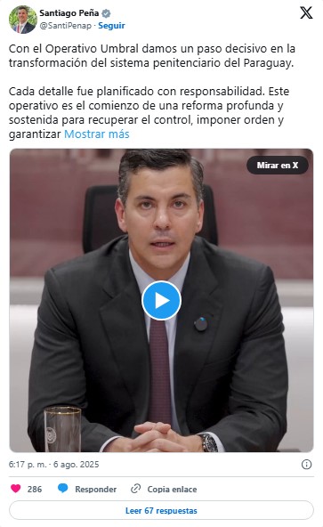 En ese contexto, remarcó Rolón, el Gobierno de Santiago Peña busca mostrar a la población "que está haciendo algo para retomar el control de las cárceles", apostando por lo que el analista denominó como "una puesta en escena bukeliana al 100%".