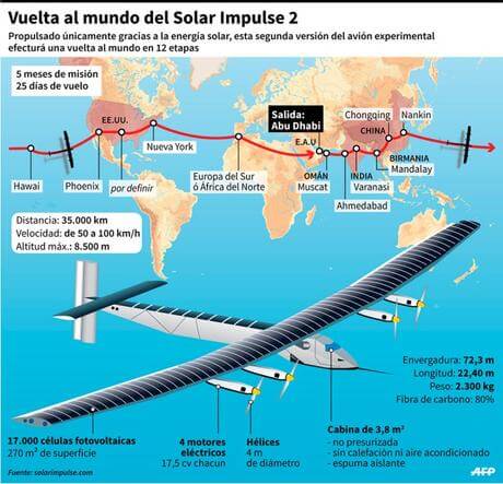 Solar Impulse 2 sera el primer avion solar en dar la vuelta al mundo