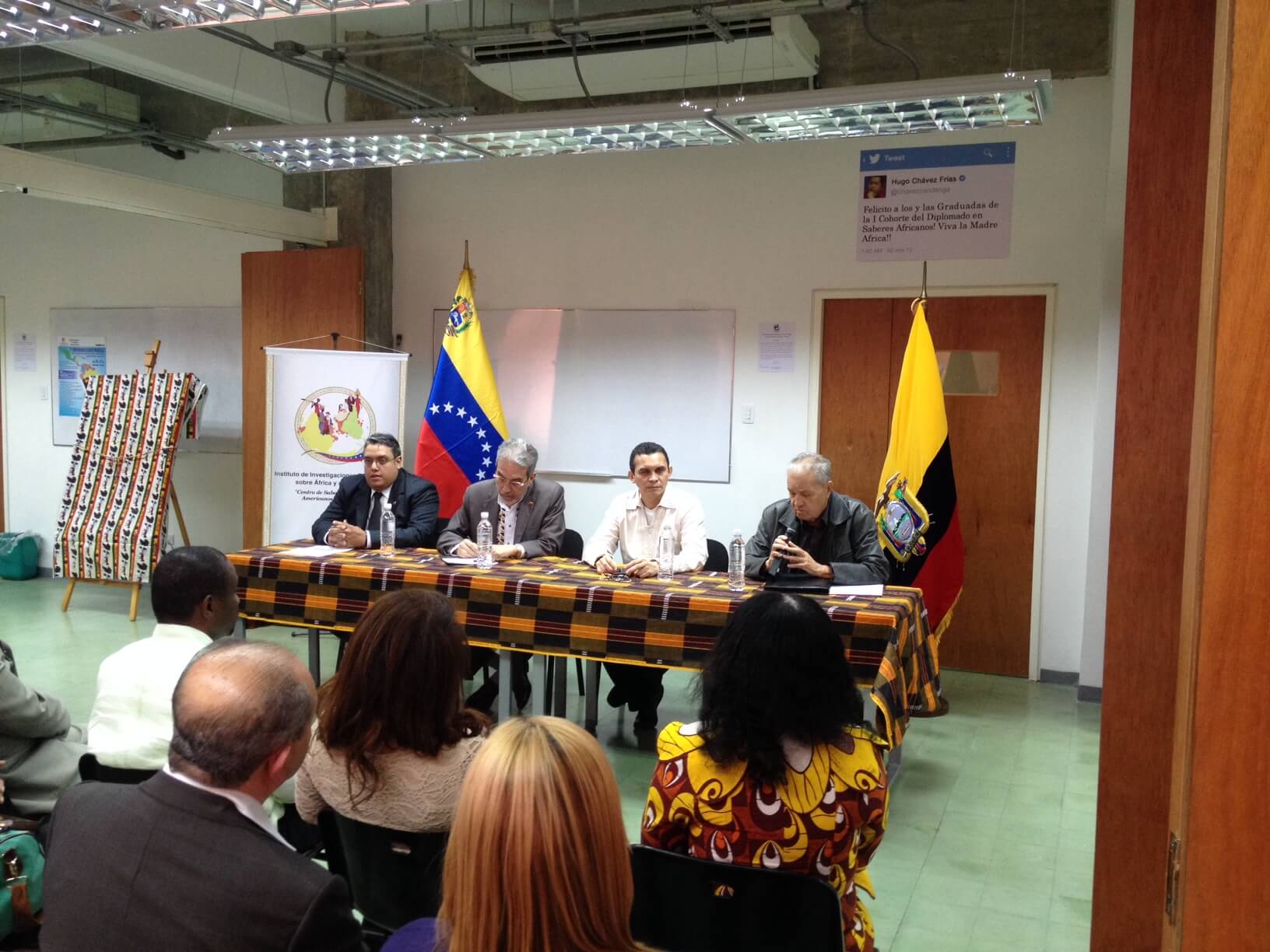 El 25 de octubre se iniciaron los cursos de los diplomados que imparte el Instituto de Investigaciones sobre África y su Diáspora (Centro de Saberes Africanos, Americanos y Caribeños). En la actividad inaugural estuvieron presentes el Director Fundador de la Institución Reinaldo Bolívar, el embajador de la República de Ecuador en Venezuela Rafael Quintero, representantes diplomáticos de las Repúblicas de Angola, Egipto y Nigeria, el cuerpo directivo, profesores y estudiantes del prestigioso Centro de Saberes, primera casa de estudio e investigación en su tipo en Venezuela y Nuestra América.