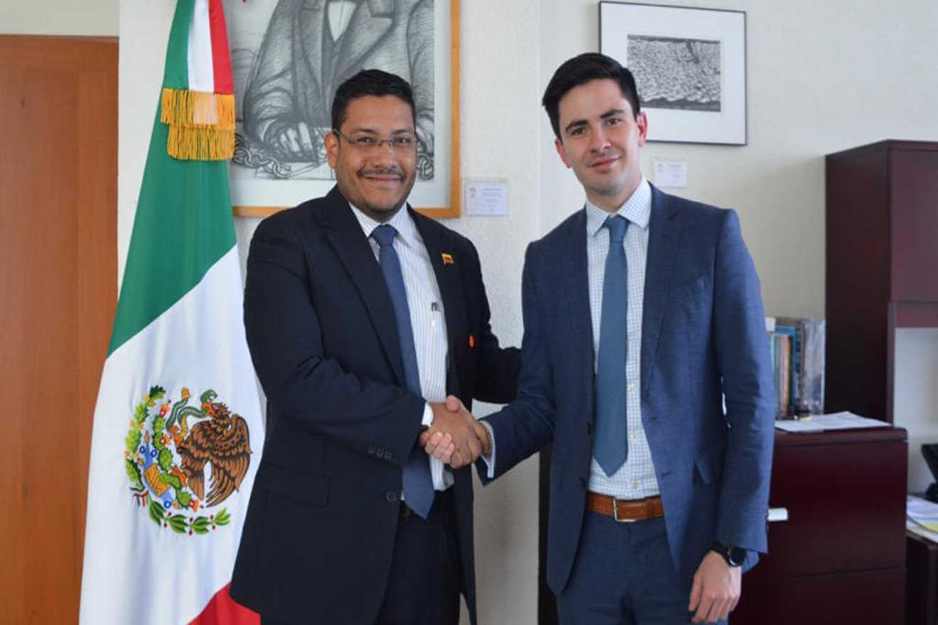 Este martes el viceministro para América Latina,Rander Peña, se reunió con Efraín Guaderrama,director regional de Organismos y Mecanismos Regionales Americanos de la Secretaría de Relaciones Exteriores de México, en el marco del traspaso de la Presidencia pro tempore de la Comunidad de Estados Latinoamericanos y Caribeños (Celac) a realizarse en el mencionado país este 8 de enero.